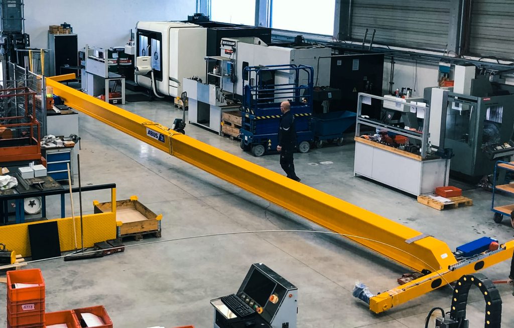 Der Hallenkran des Herstellers ABUS verfügt über eine Tragfähigkeit von 3 Tonnen und hat eine Spannweite von über 17 Metern.